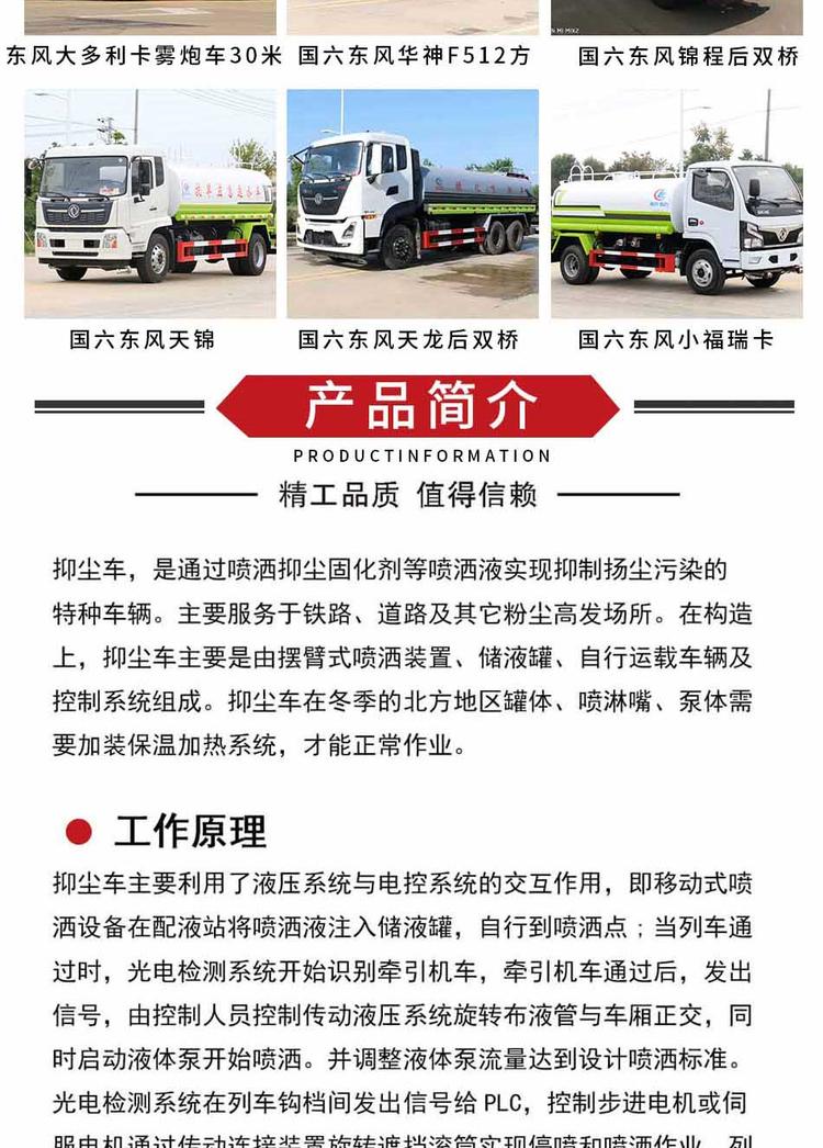 東風天津6 12方噴頭頂裝:罐體實際容積為12方,采用武鋼優質碳鋼,方圓罐結構。標準配置:前鴨嘴、前沖、后噴、側噴、后對機**、大型沖孔平臺(無積水、無腐蝕)、管道加厚、大口徑球閥、氣動閥門**開關、內罐防銹.東風天津6 12方噴頭可選配置:霧炮、電子水炮、箭燈。