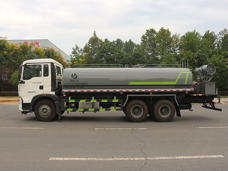 標(biāo)準(zhǔn)配置灑水車(chē)主要裝備有:前沖(沖洗公路路面)、后灑(公路路面養(yǎng)護(hù))、側(cè)噴、高位側(cè)花灑(路邊綠化帶優(yōu)化);后工作平臺(tái)高壓水炮,可調(diào)節(jié)成柱狀,射程≥28m;也可調(diào)節(jié)成霧狀,射程≥30米,水泵自吸高度:≤7m,灑水寬度:≥15m。側(cè)防護(hù)網(wǎng),自流閥,消防接頭。灑水車(chē)水泵為常壓水泵,功能可以抽水、排水。另外根據(jù)用戶(hù)要求,可加消防泵、噴霧機(jī)、農(nóng)藥卷盤(pán)、農(nóng)藥柱塞泵。罐內(nèi)可以做防腐防銹、電磁閥氣動(dòng)閥自動(dòng)放水等****,以滿足不同用戶(hù)需求。