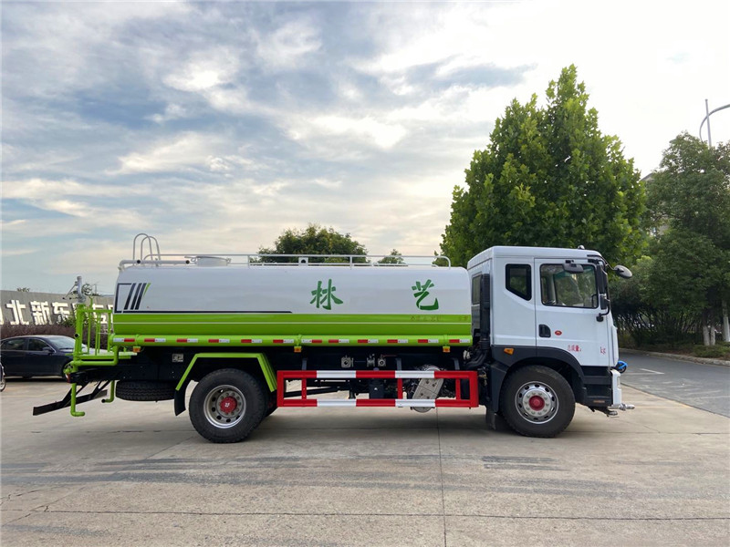 3,廣西玉柴機(jī)器股份有限公司4缸玉柴200馬力發(fā)動(dòng)機(jī),發(fā)動(dòng)機(jī)型號(hào)YCS04200-68,法士特8檔變速箱,275/80R22.5真空胎 。4,東風(fēng)康明斯發(fā)動(dòng)機(jī)有限公司6缸康明斯230馬力發(fā)動(dòng)機(jī),發(fā)動(dòng)機(jī)型號(hào)B6.2NS6B230,法士特8檔變速箱,10.00R20鋼絲胎。3950軸距(也可以選擇4500軸距),帶空調(diào)、中控鎖、電動(dòng)玻璃、轉(zhuǎn)向器及離合器液壓助力,氣壓制動(dòng),排氣制動(dòng)。灑水車專用功能配置:罐體實(shí)際容積約為12--14--16立方米,采用武鋼優(yōu)質(zhì)碳鋼板卷壓成型,自動(dòng)焊接。配備專用灑水泵,自吸自排,前噴后灑、側(cè)噴、后工作平臺(tái)及灑水高壓炮。灑水泵自吸高度為6米左右,整車灑水寬度14米左右,后工作平臺(tái)高壓水炮上下左右360°旋轉(zhuǎn)可調(diào)成:直沖狀、大雨、中雨、霧狀、有效射程≥28米,整車帶接頭、水位計(jì),自流閥。后工作平臺(tái)主管路帶1寸澆花接口,附送2根3米水管,1個(gè)爬梯,兩側(cè)及后保險(xiǎn)杠。 灑水車選裝配置:
