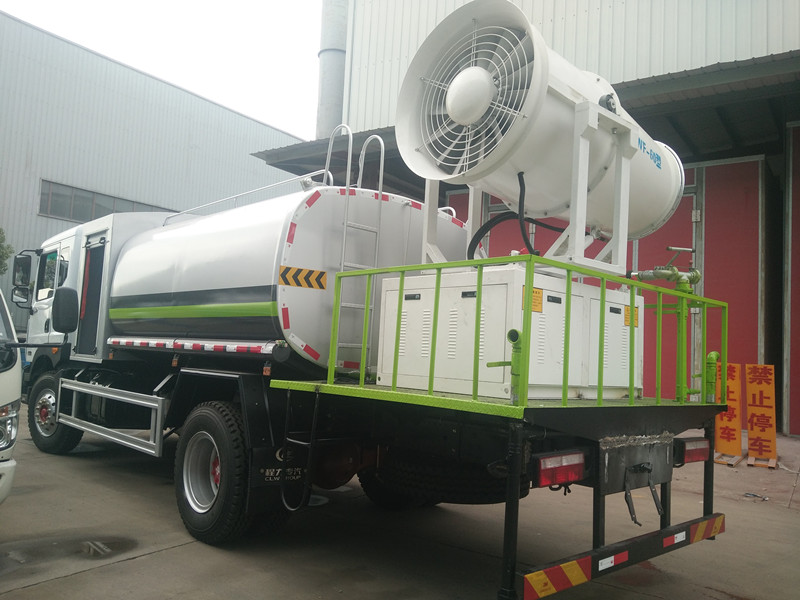 東風(fēng)D9多利卡抑塵車,排半駕駛室,153配置底盤,4500mm軸距,國五康明斯180馬力發(fā)動機(jī),陜齒小八檔變速箱,10.00R20鋼絲胎,方向助力,斷氣剎,原廠空調(diào),電動窗,行車記錄儀,GB7258新規(guī)。 東風(fēng)D9多利卡抑塵車容積:10-11立方, 罐體采用4mm厚武鋼專用容積板制作,大功率專用灑水泵。前沖(噴),后灑,帶側(cè)噴,后置工作平臺,帶灑水車全部功能,平臺上安裝綠化灑水炮可全方位旋轉(zhuǎn)可連續(xù)調(diào)成直沖莊、大雨、小雨、毛毛雨;帶安排護(hù)欄,帶自流閥,帶消防接口。東風(fēng)D9多利卡抑塵車,帶自吸泵自吸自排,可將池塘的水直接吸入罐體內(nèi)也可直接從城市街道消防栓上連接注水,吸入罐體內(nèi)。罐前量水位管、罐后爬梯、罐上罐口帶簡易護(hù)欄、罐側(cè)雙炮筒、4寸鋼絲塑膠管兩根,罐體表面雙層油漆工藝,防銹、耐腐蝕。可安裝50-80型柴油霧炮機(jī)組柴油電機(jī)組,發(fā)電機(jī)內(nèi)置安裝。