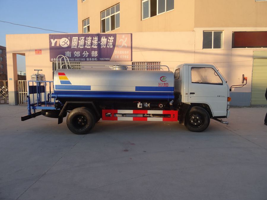 改裝配置:罐體采用4mm厚武鋼專用容積板制作,實際容積5立方,罐內隔板具有防波作用,以減低汽車行駛時罐體液體的沖擊。泵 進泵出,消防栓接口,前沖、后灑、側噴、后工作平臺帶綠化水炮,垂直吸程≧7米,灑水寬度≧14-16米,射程≧20-25米,引水時 間<5min,流量90m3/h。自流閥、濾網、帶自吸自排功能。兩根等長輸水管,金屬漆,其余標配?杉友b藥盤、氣動控制閥、噴藥設備、非車帶泵動力等。