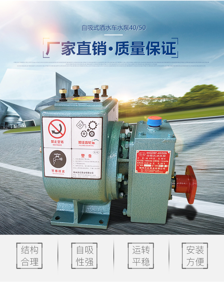 1、水泵性能分析比較 水泵的性能參數(shù)主要包括流量、揚程、輸入軸轉(zhuǎn)速、軸功率、自吸高度、自吸時間等,其選用依據(jù)主要以滿足灑水車的各項工作性能為目的。各廠家具體選用標準不一。