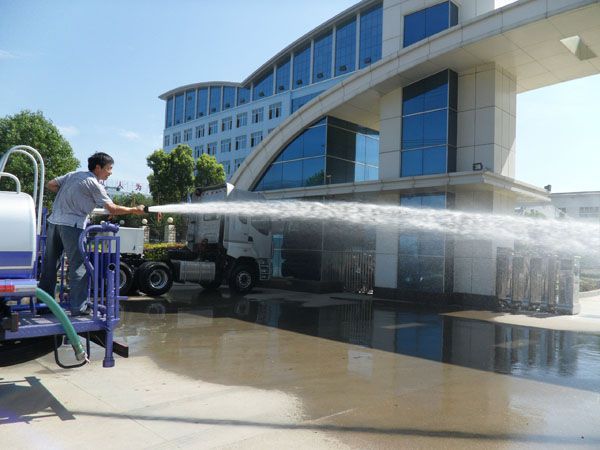 垂直吸程>6米,灑水寬度>14米,射程>28米。灑水車前沖(能將路面泥巴、塵土、垃圾沖干凈);后灑(能均勻地將水灑在路 面,一次灑水寬度>14米)、前側(cè)噴(花灑)(能均勻地將路旁綠化帶澆灌)、帶后工作平臺,平臺上安裝綠化灑水高炮(炮有大雨、中雨、毛毛雨、霧狀 可調(diào)節(jié))。配備全國質(zhì)量領(lǐng)先的大功率專用灑水泵,引水時間<5分鐘,流量90立方/小時。帶消防接頭,帶自流閥,帶自吸功能。