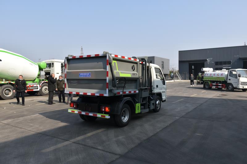改裝容積3~4立方米,箱體采用Q235碳鋼,板材邊三底四,國內知名油缸、多路閥,掛桶提升機構,外部操作,后蓋手動開啟。