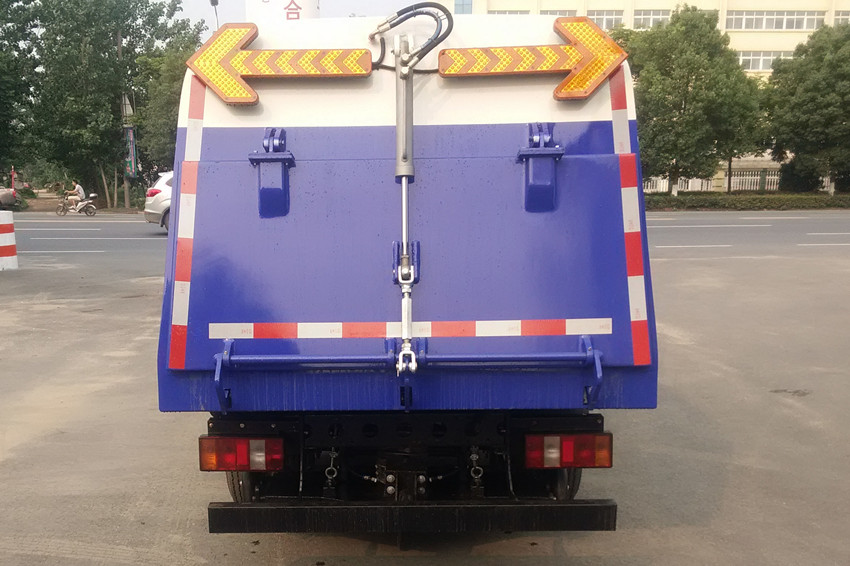 6、福田掃路車垃圾箱采用雙層內膽不銹鋼結構,容積2m3,內部加裝過濾網板,能有效地防止樹葉、塑料袋之類的輕飄物堵塞風口及灰塵的排出。內置噴霧壓塵裝置,最大限度的利用了垃圾箱裝載垃圾的空間。廂體采用傾翻卸料。