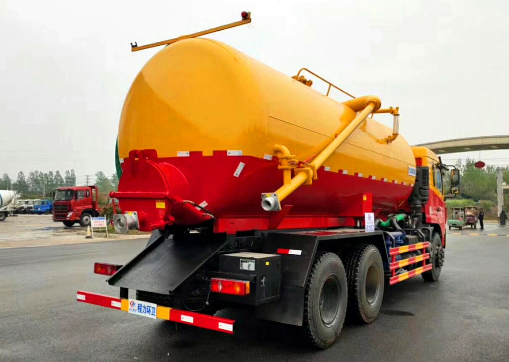 清洗裝置:配天津通潔300升高壓泵, 60米PVC雙層高壓管22通徑高壓管,10個(gè)高壓噴頭,兩個(gè)水泥蓋,頂部100的互通,水污互通用100的球閥,水罐3寸球閥安在罐體最底部.水倉(cāng)污倉(cāng)罐體內(nèi)噴防銹,后封頭600的液壓口,一個(gè)6寸自流,一個(gè)4寸的進(jìn)料口,一個(gè)4寸的排污口,側(cè)面一個(gè)6寸的球閥偷排。后蓋加裝活動(dòng)可拆式卷盤壹套,右后側(cè)一套卷盤,罐體采用8個(gè)厚鋼板制作,后蓋上帶一個(gè)600液壓口排污,300側(cè)邊自流口。