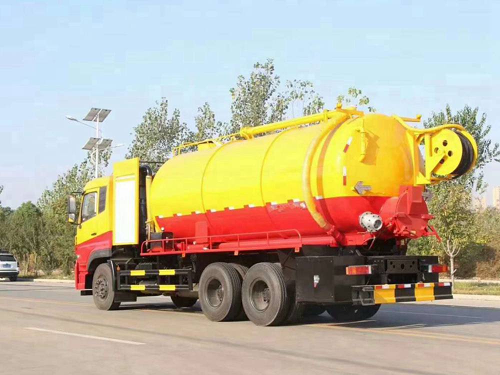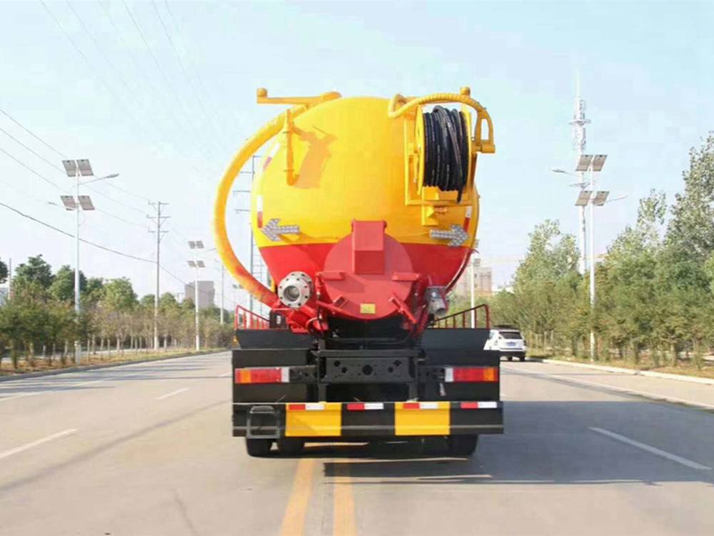 清洗裝置:配天津通潔300升高壓泵, 60米PVC雙層高壓管22通徑高壓管,10個(gè)高壓噴頭,兩個(gè)水泥蓋,頂部100的互通,水污互通用100的球閥,水罐3寸球閥安在罐體最底部.水倉污倉罐體內(nèi)噴防銹,后封頭600的液壓口,一個(gè)6寸自流,一個(gè)4寸的進(jìn)料口,一個(gè)4寸的排污口,側(cè)面一個(gè)6寸的球閥偷排。后蓋加裝活動可拆式卷盤壹套,右后側(cè)一套卷盤,罐體采用8個(gè)厚鋼板制作,后蓋上帶一個(gè)600液壓口排污,300側(cè)邊自流口。
