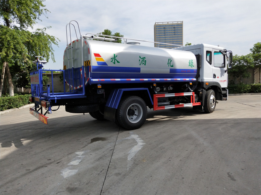 該車主要用于城鄉園林綠化灑水,噴藥等;主要裝置為水罐及泵,隨底盤選裝駕駛室。罐體實際容積:15立方米,罐體采用武漢鋼鐵公司Q235優質碳鋼板材,罐體內設多道防波隔板,采用高壓氣體試漏檢測,使罐體具有強度高,重心穩。車輛運載安全平穩。罐體外表涂防銹漆及裝飾漆。罐體及各保險杠貼紅白色視覺反光條,罐體兩側噴“綠化灑水車”字樣(可按您的要求噴繪字樣),罐體顏色出廠為上白下綠或上白下藍(可按您的要求噴繪顏色)。