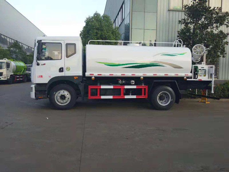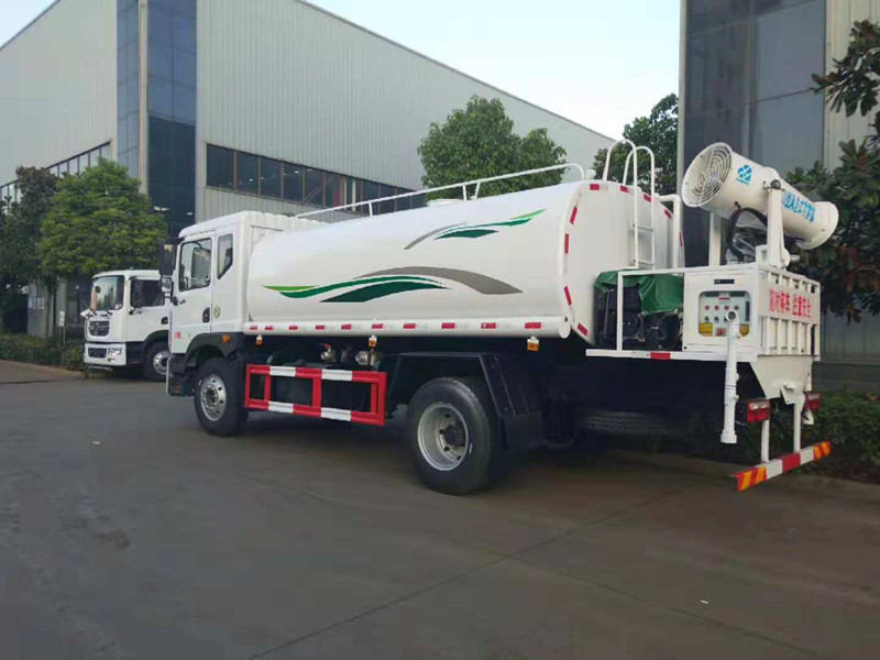 東風(fēng)多利卡D9噴霧抑塵灑水車_抑塵車多少錢(qián)一輛;我公司生產(chǎn)的東風(fēng)多利卡D9噴霧抑塵灑水車下線檢測(cè)了。車款車型選用東風(fēng)多利卡D9系列單橋底盤(pán),3950mm軸距,新款排半駕駛室,康明斯ISB180 50六缸發(fā)動(dòng)機(jī),國(guó)五排放,250mm車架,氣制動(dòng),動(dòng)力轉(zhuǎn)向,離合助力,空調(diào),電動(dòng)窗,中控鎖,ABS,8噸后橋,4噸前橋,東風(fēng)六檔變速箱,9.00R20鋼絲胎。選配30米噴霧抑塵機(jī)。罐體用5MM碳鋼板制作,罐內(nèi)隔板具有防波作用,以減低汽車行駛時(shí)罐體液體的沖擊。整車帶一個(gè)專用灑水泵(垂直吸程6米),灑水寬度14米,射程28米。多功能灑水車配備2個(gè)前沖(噴)(能將路面泥巴、塵土、垃圾沖干凈);2個(gè)后灑(能均勻地將水灑在路面,一次灑水寬度14米)、2個(gè)側(cè)噴(花灑)(能均勻地將路旁綠化帶澆灌)、帶1個(gè)后工作平臺(tái),平臺(tái)上安裝1個(gè)綠化灑水高炮(灑水炮可全方位旋轉(zhuǎn),可連續(xù)調(diào)成直沖狀、大雨、小雨、毛毛雨,霧狀可調(diào)節(jié)沖洗高大樹(shù)木),引水時(shí)間<5min,流量90m3/h。帶1個(gè)消防接頭,帶1個(gè)自流閥,1個(gè)過(guò)濾裝置、人性化爬梯及側(cè)防護(hù)欄,安裝灑水音樂(lè)喇叭。