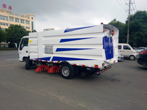 5方掃路車底盤配置:五十鈴120馬力發動機帶中冷增壓,3360軸距,MSB5檔變速箱,7.00R16 14PR鋼絲胎,2.5噸前橋,4.8噸加強型后橋,原廠空調,電動窗,ABS,離合助力。
