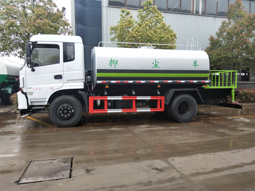 東風天錦12-15噸灑水車,該車采用國五電噴發動機,平頭豪華一排半駕駛室,康明斯180馬力,東風6檔變速箱,4.5噸前橋,9噸后橋,斷氣剎,方向助力,電動門窗,中控鎖,空調,軸距:4500mm,900R20輪胎,1條備胎,原廠ABS防抱死。