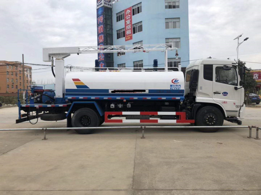 抑塵車吸程≧7米,灑水寬度≧14-16米,射程≧25-40米,引水時間<5min,流量60m3/h。前沖(噴)、后灑、帶側噴(花灑)、帶后工作平臺、平臺上安裝綠化灑水高炮(炮噴射形狀可調節:直沖、大雨、中雨、毛毛雨、霧狀、可連續調節,360°旋轉),配消防接口,自流閥,濾網,帶自吸自排功能。配備大功率專用灑水泵,泵可自吸自排,安裝過濾網,帶消防接口,可通過消防栓進水,帶自流閥,此車尾部加裝大功率農藥噴灑炮,噴灑狀態霧狀,有效射程15-45米,外部平臺帶獨立的機組。