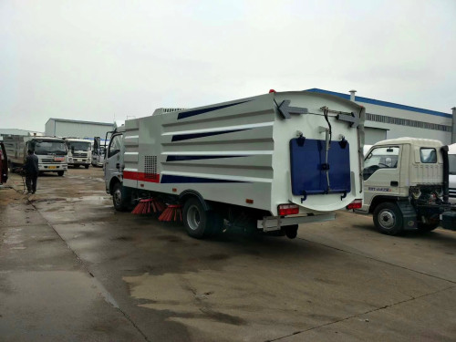 本公司產品設計新穎造型美觀:合理的整車長、寬、高配比,使整車造型美觀大方,耳目一新。掃路車采用矩形結構的清水箱、垃圾箱,采用不銹鋼瓦棱結構設計,不但使外觀造型新穎,更增強了垃圾箱的強度和剛度,減輕自重。采用獨創的鎖緊技術,使垃圾箱后門密封效果更好。垃圾箱內還設有高壓水清洗裝置,卸料時可幫助卸出垃圾,清洗垃圾箱內壁。