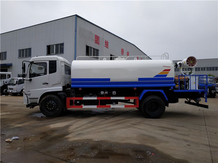 4.東風天錦灑水車(罐體容積8000--12000L)該車采用東風康明斯170馬力柴油發動機和東風商用車140馬力柴油發動機,9.00-20輪胎,帶方向助力,帶空調,斷汽剎, 5檔變速箱,4.5噸前橋,9噸后橋,整車外形尺寸:長×寬×高(mm)8500×2390×2900,總質量(kg):16000,額定質量(kg):9300,整備質量(kg):6505,該車罐體有效容積:10噸-12噸,該車帶國家免征公告。