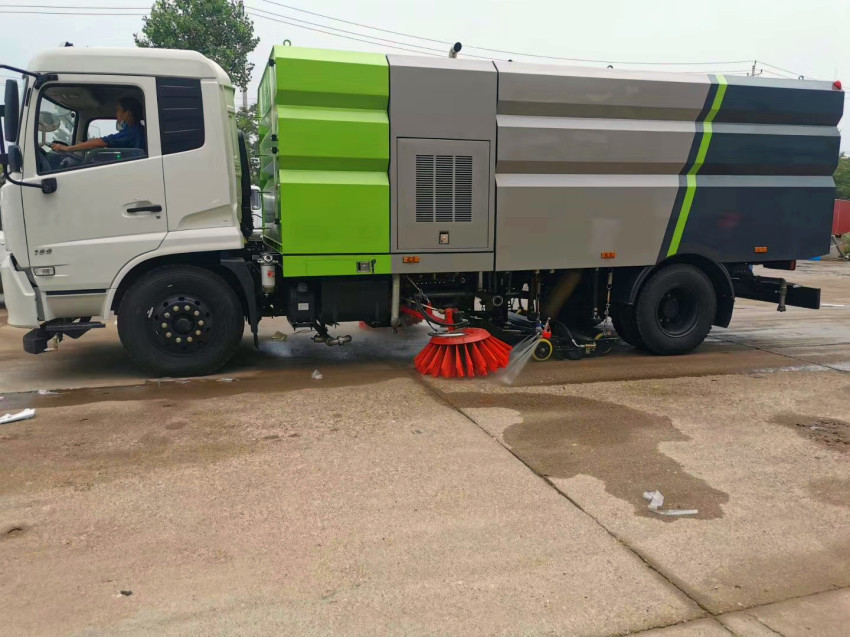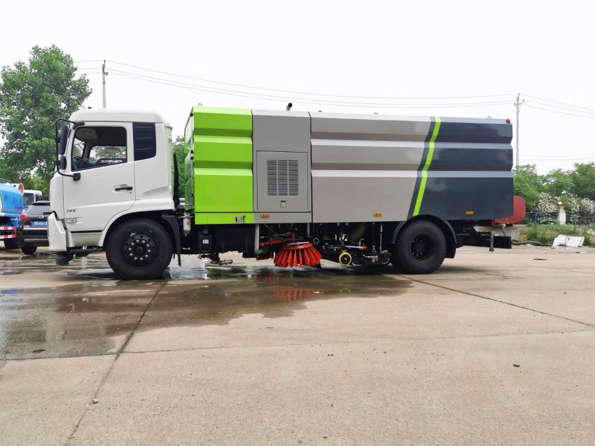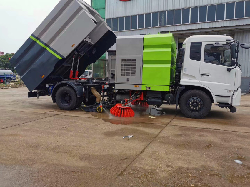 東風天錦洗掃車具有路面清洗、路面清掃路緣和路緣石立面洗刷、低壓沖洗、噴霧 除塵等多功能。有“全洗掃”、 “左洗掃”、 “右洗掃”、 “全掃”、 多種作 業模式可選擇。選擇“全洗掃”模式清洗廣場和路面,清洗效率效果好,洗 凈率達 95%以上。選擇“左洗掃”或“右洗掃”模式清洗路面和路緣 。需要進 行路面清掃或路面保潔作業時,可選擇掃路模式。需要噴霧除塵時,可開啟噴霧裝置,進行噴霧除塵作業。可以像灑水車一樣對路面進行低壓沖洗作業。