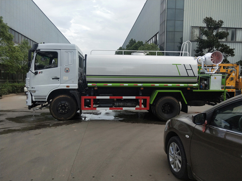 尾部帶綠化炮,帶自吸自排灑水泵,后工作平臺高壓水炮直沖射程25-30米(可調成:直沖狀、大雨、中雨、小雨、毛毛雨),整車帶消防接頭、