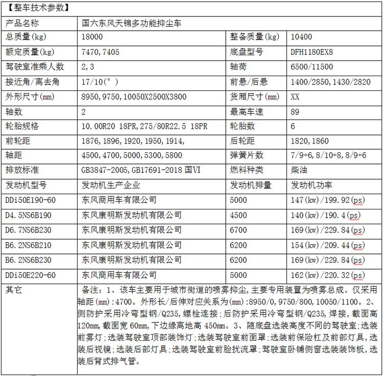 國六東風(fēng)新天錦標(biāo)準(zhǔn)平頂排半駕駛室,軸距4700mm,東風(fēng)康明斯210馬力國六發(fā)動(dòng)機(jī),東風(fēng)6檔變速箱,275真空胎,帶原裝冷暖空調(diào),帶 ABS,方向助力,斷氣剎,前霧燈,水晶大燈,廣角后視鏡,前路面視鏡,可調(diào)前大燈,調(diào)整臂,防飛濺,新底盤。