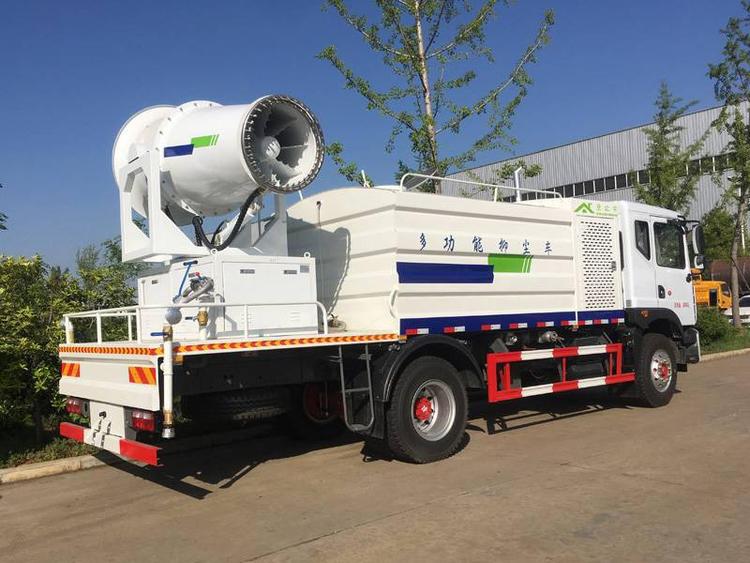 帶前部沖洗路面噴灑裝置、后部扇形降塵噴灑裝置,兩側(cè)面噴灑裝置,帶后部工作平臺、平臺上安裝綠化灑水炮(炮噴射形狀可調(diào)) , 可調(diào)直沖狀、大雨、中雨、毛毛雨,可連續(xù)調(diào)節(jié),柱狀射程可達(dá) 28 米,垂直吸程 6.5 米,揚(yáng)程 14 米,另加裝車載式風(fēng)送噴霧機(jī),霧化效果好,可遠(yuǎn)程噴霧,水平射程達(dá) 80 米。帶消防接口、自流閥,可自吸自排.