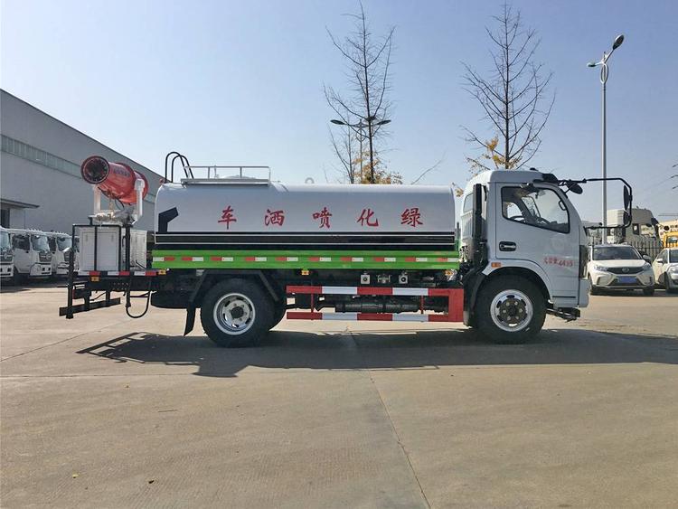 霧炮灑水車上裝配置:碳鋼4mm厚,實際容積9立方,前沖、后灑、側噴、平臺高炮,大通徑球閥,自吸式灑水泵,LED邊燈,音樂喇叭,新規防飛濺,選配30米霧炮機、可抑塵、可噴藥打藥消毒等。