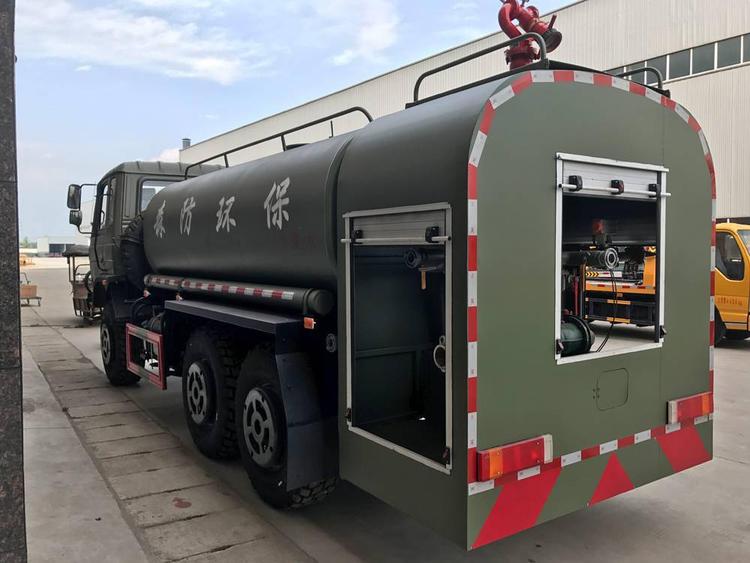 東風6驅越野水罐車,6驅沙漠運水車該系列車具有消防車功能,同時又具有灑水車所有的功能,可前沖、后灑、側噴、一車多用,總體布局結構及選裝器材亦可按照用戶要求配備,是新型環保節能的灑水系列消防車。該車采用六驅東風越野底盤,CB10/40泵,配置SP40型水炮,并加裝噴灑功能;特別適合于路況較差的山區、森林、沙漠、礦區等復雜環境。
