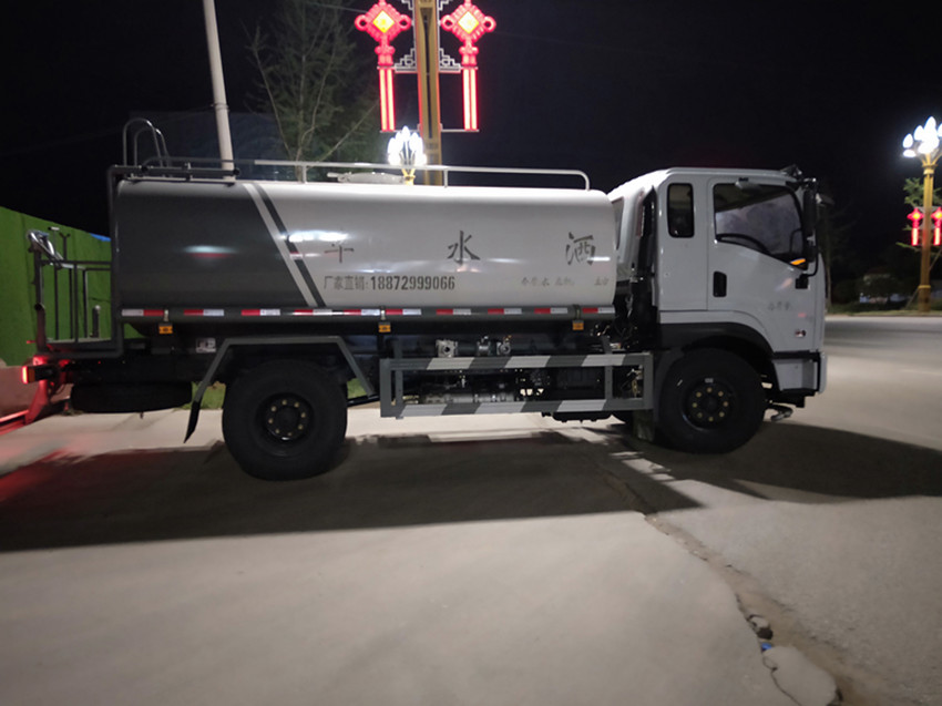 抑塵車配備大功率專用灑水泵,泵可自吸自排,安裝過濾網,帶消防接口,可通過消防栓進水,帶自流閥,隨車選裝20米綠化卷盤,可噴灑農藥,罐體金屬漆。罐體有橢圓和方圓罐兩種,可根據用戶的要求定做