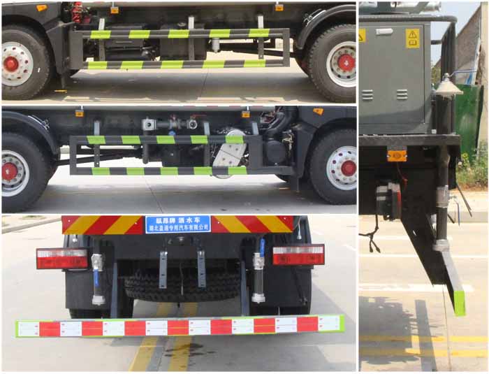 備注 | 該車主要用于城鄉(xiāng)園林綠化,路面噴灑,除塵和降溫;主要裝置為水罐及噴灑裝置;隨底盤選裝駕駛室,隨底盤選裝燃油箱,電瓶,尿素罐,儲氣筒左右安裝位置;罐體總容量:11.45立方米;罐體有效容積:10.9立方米;罐體外形尺寸(長×長軸×短軸)(mm):5200×2300×1400,4400×2350×1600;側、后防護材料均為:Q235碳鋼,連接方式均為:螺栓連接,后部防護截面尺寸(mm):120×50,后部防護離地高度(mm):450.ABS系統(tǒng)生產(chǎn)廠家,型號:焦作博瑞克控制技術有限公司,J ABS;襄陽東風隆誠機械有限責任公司,ABS/ASR-24V-4S/4M.選裝噴灑裝置樣式,選裝弧形噴灑裝置,選裝箭頭燈裝置,選裝自動球閥安裝位置,選裝水炮支架位置,選裝無高位花灑裝置.選裝罐體頂部方形罐口,選裝車輛前部鴨嘴裝置,選裝電子炮樣式,前伸500mm時,車輛長度為8950,8200mm.選裝后部自流口裝置,后部作業(yè)燈僅在作業(yè)時開啟,車輛行駛過程中不可開啟. | ||