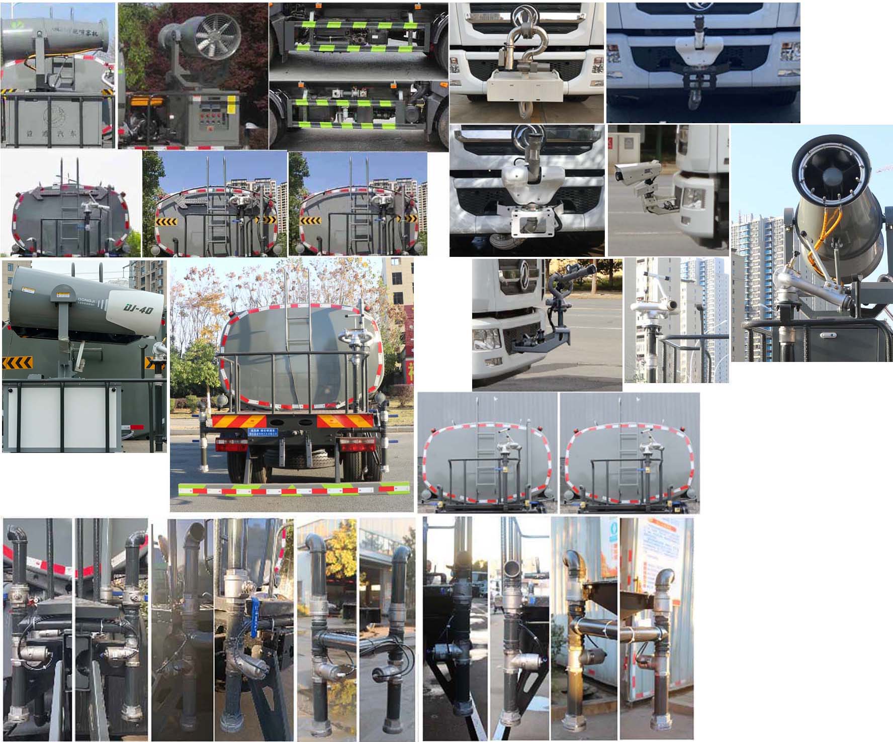 東風D9灑水車產品標配前噴(鴨嘴)、后沖、后灑、側噴、后置式工作 平臺,平臺上配置綠化水炮(可 360°旋轉,既可以調成柱狀,也可 以調成霧狀,更可以調成直沖狀、大雨、中雨、小雨、毛毛雨),配 備優質大功率專用灑水泵(可自吸自排,可從河里或池塘抽水到罐體), 取力器,雜物過濾網,消防接口,自流球閥系統、取力器、球閥、濾網 均為國家標準產品,主管道加粗,法蘭墊、法蘭盤加厚,大通徑球閥。 整體具備性能優良安全可靠、效率高、流量大、維修方便等特點。