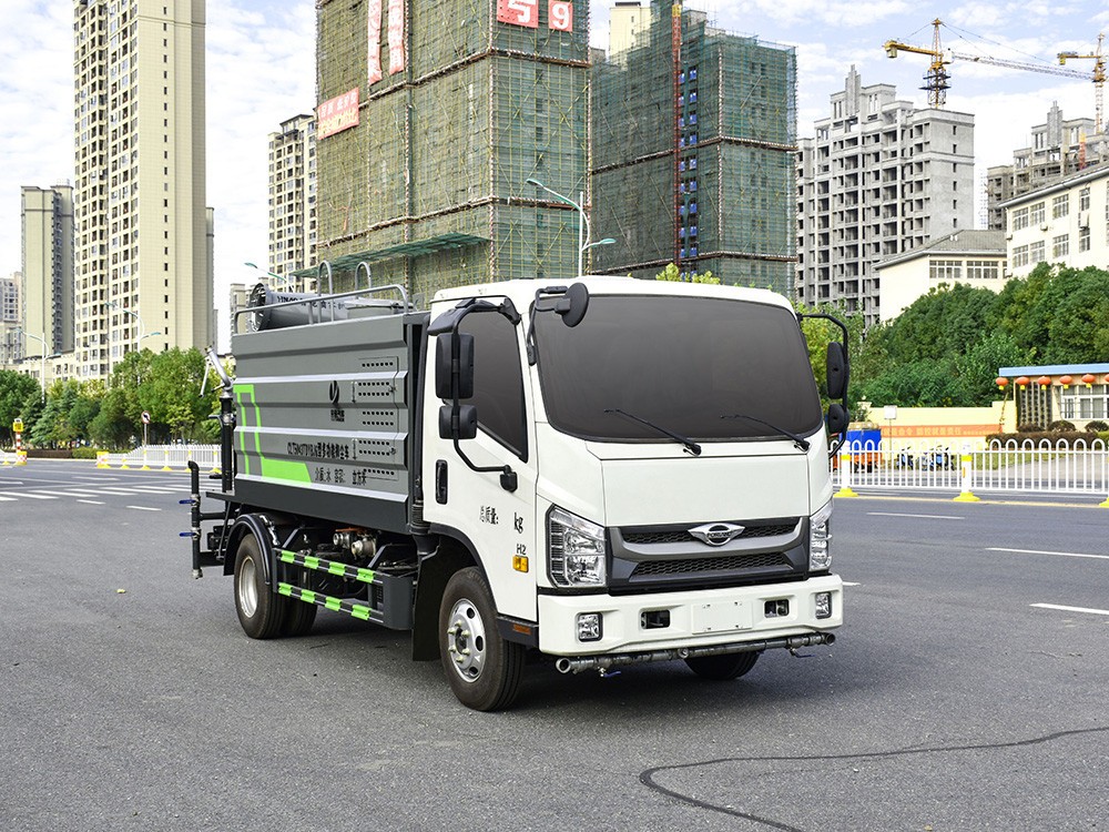 福田5方霧炮灑水車產品配置 1.底盤配置: 福田 H2 駕駛室,發動機全柴 115 馬力,萬里揚 5 檔變速箱, 7.00R16 鋼絲胎,3360 軸距,中控鎖,電動玻璃,T-BOX(全國通用), 5T 后橋,斷氣剎,ABS
