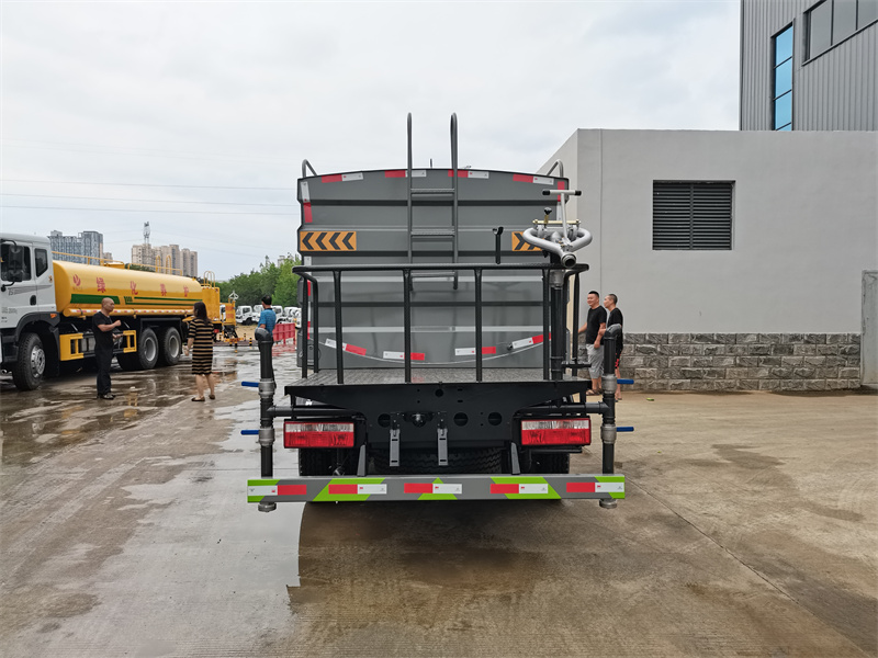 東風7方霧炮灑水車產品配置 1.底盤配置: 發動機玉柴 140 馬力,萬里揚 6 檔變速箱,2T 前橋,3.5T 后橋,7.00 鋼絲胎, 軸距 3308,氣剎,ABS,空調,電動門窗,中控鎖,雙層大梁 。 2.上裝配置: 1、罐體約為 7 方 2、邊燈帶電,罐體尾部上方標配 2 個紅色示寬燈 3、標配前噴為鴨嘴直沖,標配后對沖,可根據需求來調整對沖位置 4、花紋防滑平臺,炮筒后蓋為定制型螺栓卡扣 5、前噴、后對沖、后灑、側噴,綠化高炮球閥均采用 50 大通徑不銹鋼球閥 6、新式軸承式水炮,更加耐用 7、40-50 型水泵 8、防腐法蘭墊片 9、鋁制后灑,不易炸開 10、罐體自動焊(美國林肯焊機及電源),拼板自動焊接,封頭環縫焊接, 無氣孔,焊縫美觀 11、側護網、后保險杠、均為螺栓連接方便拆卸維修方便。 12、塑料擋泥板,替代鐵擋泥板,更加輕便,用螺栓連接,方便拆卸。 13、前部、后部主管連接處為 6 孔圓法蘭不易沖墊