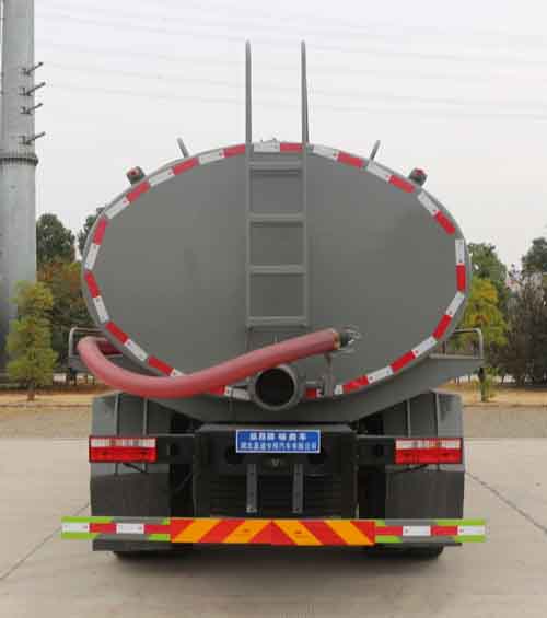 主要專用裝置:罐體及吸糞裝置,主要用于抽排運污水、糞便、泥漿等液態污物;隨底盤選裝駕駛室;罐體總容量:10.5立方米,罐體有效容積:10立方米;罐體外形尺寸(長×長軸×短軸)(mm):4400×2300×1550,5000×2300×1360;整車長度/軸距對應關系(mm):8000/4500,7200/3950; 側、后防護材料均為:Q235碳鋼,連接方式均為:螺栓連接,后部防護截面尺寸(mm):120×50,后部防護離地高度(mm):450;ABS系統生產廠家,型號:焦作博瑞克控制技術有限公司,J ABS;襄陽東風隆誠機械有限責任公司,ABS/ASR-24V-4S/4M。選裝后部出口樣式;隨底盤選裝燃油箱,電瓶,尿素罐,儲氣筒左右安裝位置.選裝罐體左右及后部樣式。選裝限速裝置,限速89。