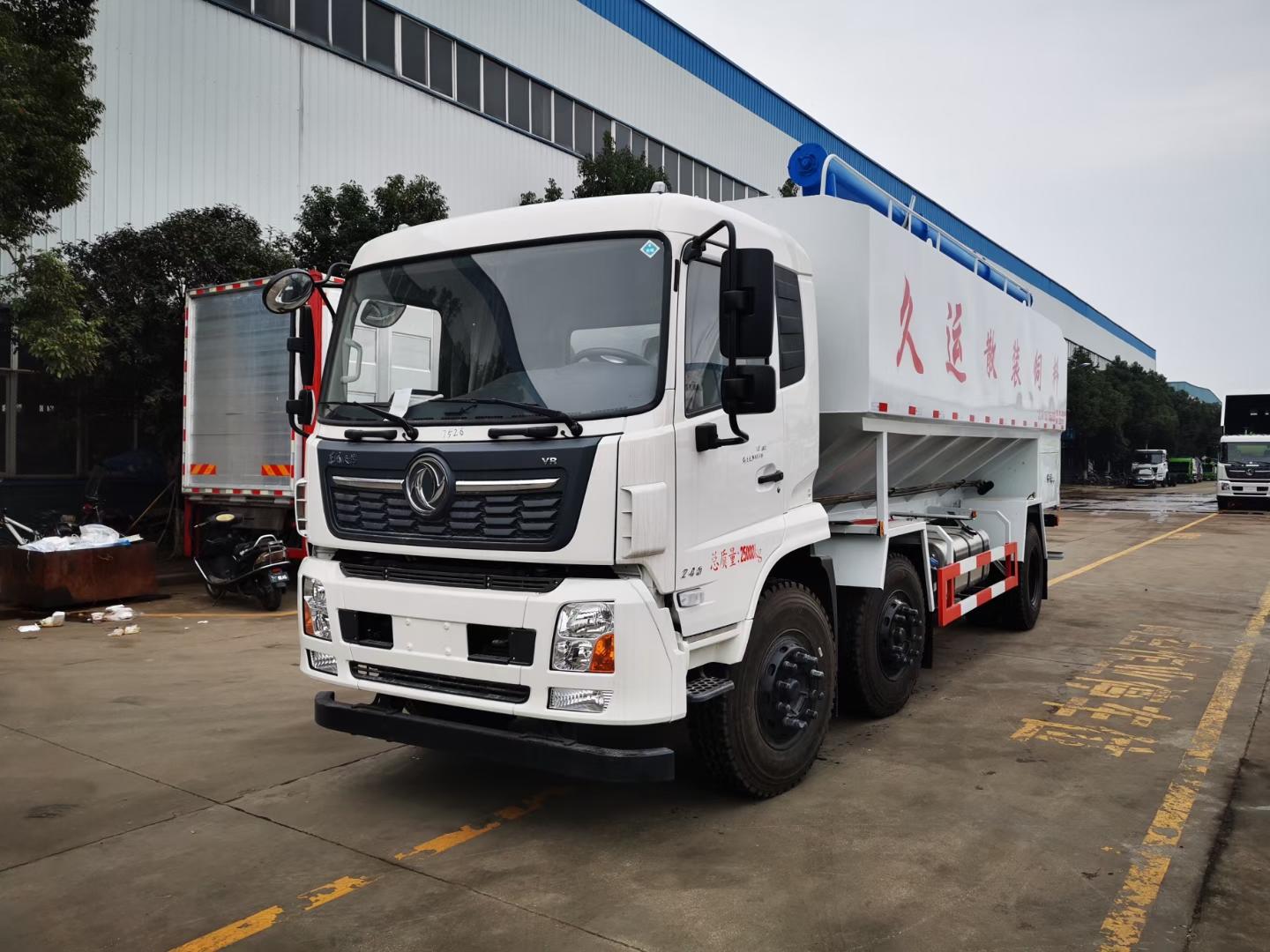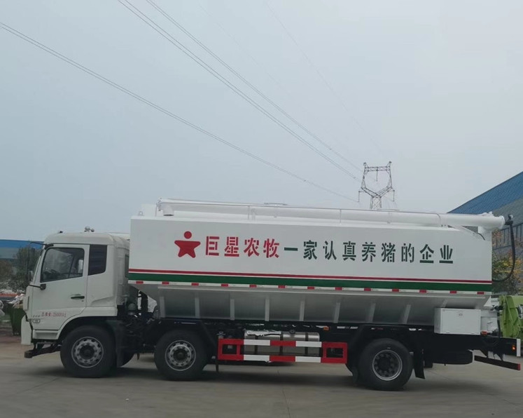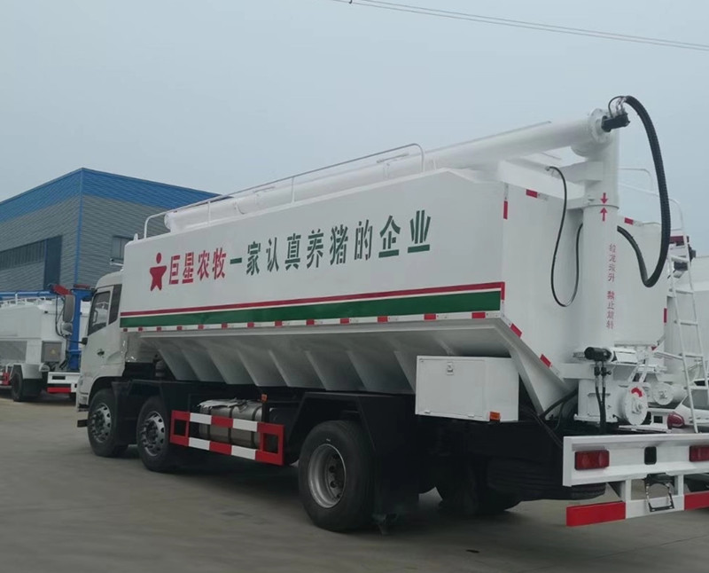 國六東風天錦小三軸散裝飼料運輸車-30方散裝飼料車:東風天錦VR駕駛室,康明斯245馬力發(fā)動機,法士特8檔變速箱,1800+5000mm/1800+4100mm軸距,11.00R20鋼絲胎,電動門窗,中控鎖,原廠空調(diào),ABS,方向助力,鋁合金擋泥板,帶環(huán)保和燃油,上戶辦營運證無憂!上裝采用武鋼優(yōu)質(zhì)碳鋼板,三條絞龍,頂部絞龍可180度旋轉(zhuǎn),分設(shè)四個倉,可獨立控制各個倉的卸料順序和速度!