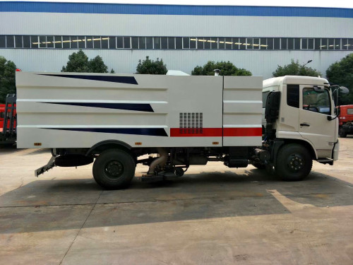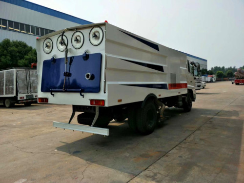 東風天錦吸塵車 上裝配置:2立方水箱、8立方不銹鋼垃圾箱,中置吸盤、康明斯副發動機、施耐德控制開關、海普瑞思電磁閥組、無極變速自動離合器、免維護離心式風機、不銹鋼垃圾箱、高精度垃圾箱過濾系統(最高可達0.3微米)、進口脈沖閥、PLC一鍵智能控制系統、尾部LED箭頭燈、手動泵應急系統、車尾霧狀噴水潤濕功能?蛇x裝前置雪鏟、掃雪滾。