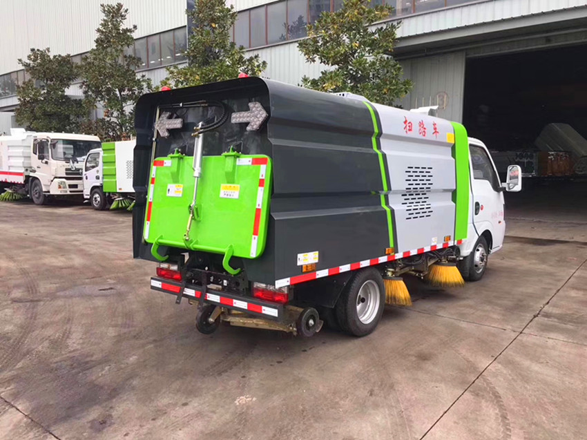 1. 采用吸掃混合的方式收集垃圾,濕式除塵、電液控制,液壓傾翻卸料的作業方式對路面進行清掃作業。