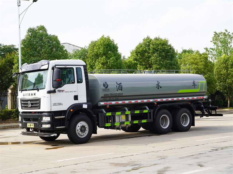 重汽汕德卡18噸灑水車產(chǎn)品標(biāo)配前噴(鴨嘴)、后沖、后灑、側(cè)噴、后置式工作 平臺(tái),平臺(tái)上配置綠化水炮(可 360°旋轉(zhuǎn),既可以調(diào)成柱狀,也可 以調(diào)成霧狀,更可以調(diào)成直沖狀、大雨、中雨、小雨、毛毛雨),配 備優(yōu)質(zhì)大功率專用灑水泵(可自吸自排,可從河里或池塘抽水到罐體), 取力器,雜物過濾網(wǎng),消防接口,自流球閥系統(tǒng)、取力器、球閥、濾網(wǎng) 均為國家標(biāo)準(zhǔn)產(chǎn)品,主管道加粗,法蘭墊、法蘭盤加厚,大通徑球閥。 整體具備性能優(yōu)良安全可靠、效率高、流量大、維修方便等特點(diǎn)。