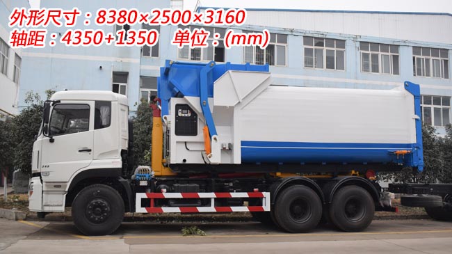 配15~20立方米勾臂式垃圾箱,也可配12~15立方米聯(lián)體壓縮垃圾箱,主勾臂采用高強度材質(zhì)打造,雙杠液壓,可加裝后液壓支腿。
