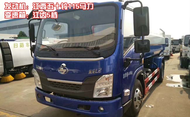 東風柳汽L2掛桶垃圾車,L25單排駕駛室,配江西五十鈴115馬力發動機,江齒5檔變速箱,Ф265離合,軸距3360,5T后橋/5.571,190(5)車架,120L塑料油箱,7.00R16,固定式駕駛室懸置、扭桿式翻轉、電動玻璃升降器、遙控鑰匙+中控鎖(四鎖合一)、液晶儀表、空調、斷氣剎、ABS。