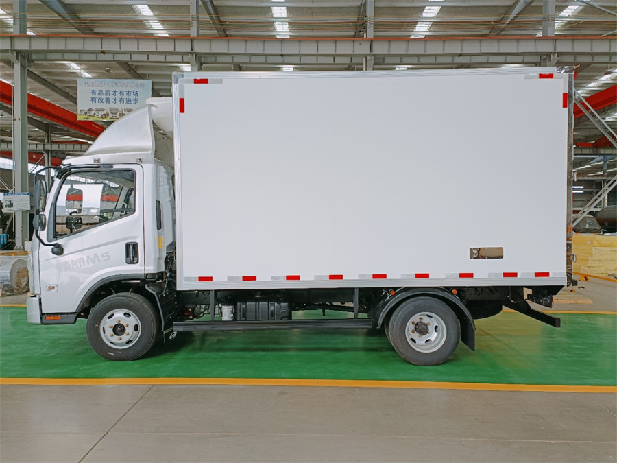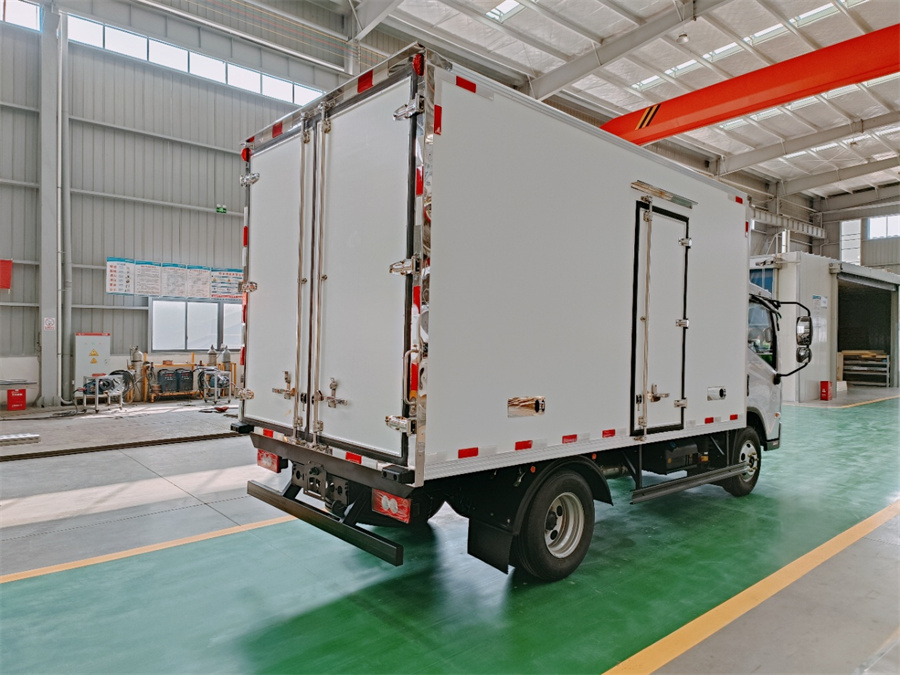 廂體底部為塑鋼花紋板,廂內(nèi)側(cè)面帶圍裙,前部排水孔,門邊條采用防雨設(shè)計和迷宮式橡膠密封條,鋁合金型材包邊,不銹鋼包角,不銹鋼門鎖,加厚型不銹鋼后門合頁及鎖件,廂體內(nèi)采用LED照明燈。