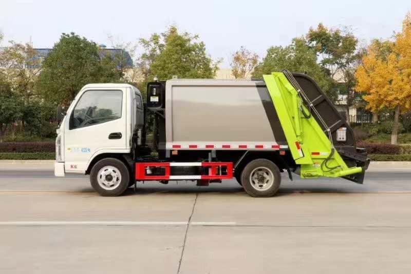 新款平面弧形廂體,廂體材料為武鋼優質碳鋼,外箱尺寸:5995×2000×2450mm,有效壓縮容積4立方,PLC一鍵操作控制,手電一體操作模式,兩側雙電控,帶駕駛室內操作,底板支撐加強,雙向壓縮,開放式易清潔污水箱,解決了垃圾運輸過程中的二次污染的問題。壓縮式垃圾車具有自動反復壓縮以及蠕動壓縮功能,壓縮比高、密封性好、裝載量大﹑操作方便、環保性好﹑整車利用功率高等優點。凱馬壓縮式垃圾車小巧靈活,可在市內地下室任意穿行,C證可開。