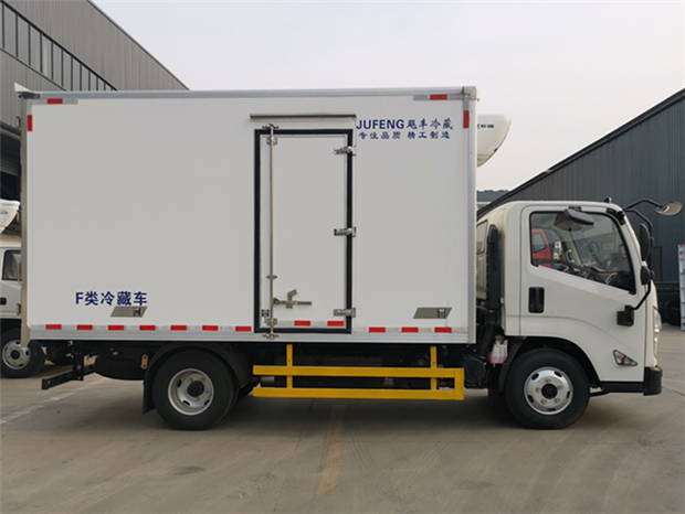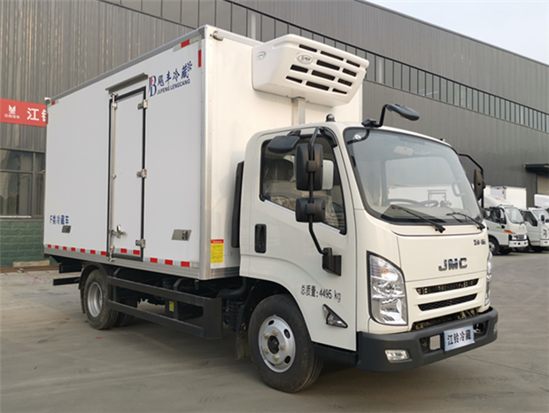 國六寬體江鈴凱運4米2冷藏車廂體配置為:采用斷橋隔熱工藝,整體框架結構制作,廂體內、外壁材料為玻璃鋼板,采用高密度保溫層,廂板內帶有骨架,廂體厚度80mm,門框,門飾件、包角全部使用不銹鋼材質。最新款鋁合金包邊型材,廂體內采用LED照明燈及廂體示寬燈;門框密封條為橡膠材質,后門梁帶加厚防撞塊,加厚型不銹鋼鉸鏈及鎖件。車體副梁采用510L高強度鋼制作,底板為鋁花紋板,車廂后門帶一個上車扶手,其余標配;