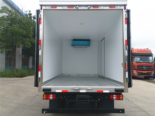 江鈴順達4米2冷藏車廂體配置為:采用斷橋隔熱工藝,整體框架結構制作,廂體內、外壁材料為玻璃鋼板,采用高密度保溫層,廂板內帶有骨架,廂體厚度80mm,門框,門飾件、包角全部使用不銹鋼材質。最新款鋁合金包邊型材,廂體內采用LED照明燈及廂體示寬燈;門框密封條為橡膠材質,后門梁帶加厚防撞塊,加厚型不銹鋼鉸鏈及鎖件。車體副梁采用510L高強度鋼制作,底板為鋁花紋板,車廂后門帶一個上車扶手,其余標配;