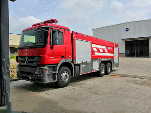 車型概述 奔馳12噸泡沫消防車是我廠采用戴姆勒股份公司原裝底盤Actros基礎上改裝而成,整車結構緊湊;專用部分由液罐、泵室、器材箱、動力輸出及傳動系統、管路系統、電氣系統等組成,廣泛適用于城鎮公安消防隊、石油化工、廠礦企業、森林、港口、碼頭等部門,可迅速接近火場展開滅火戰斗,撲救各種火災,是理想的消防裝備。