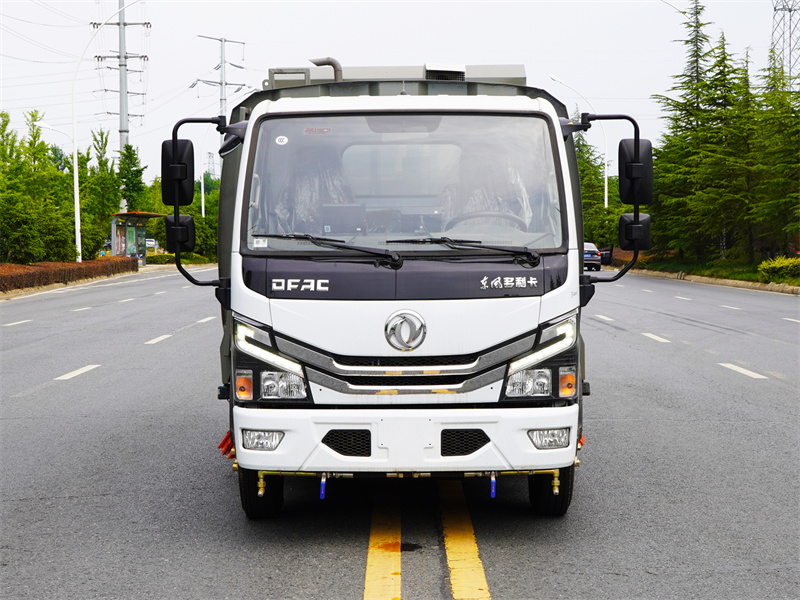 東風(fēng)多利卡洗掃車采用洗,掃,吸,混合的方式收集垃圾,濕式除塵、電液 PLC 一鍵控制,液壓傾翻卸料的作業(yè)方式對(duì)路面進(jìn)行清掃作業(yè)。