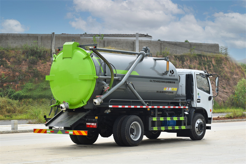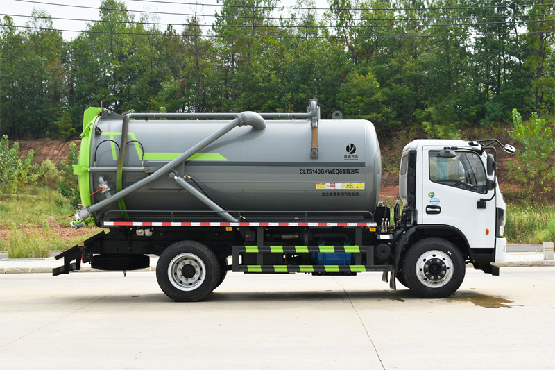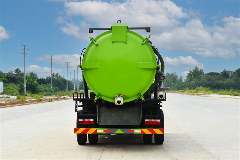上裝配置:罐體采用優質碳鋼板制作,SK-12型水循環泵,帶四通閥,防溢報警系統,配一根16米吸污管。罐體后蓋可液壓打開,罐體后吸污口為DN100球閥,一個DN100排污口,罐體可液壓舉升。