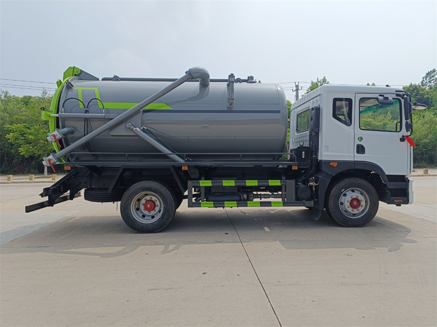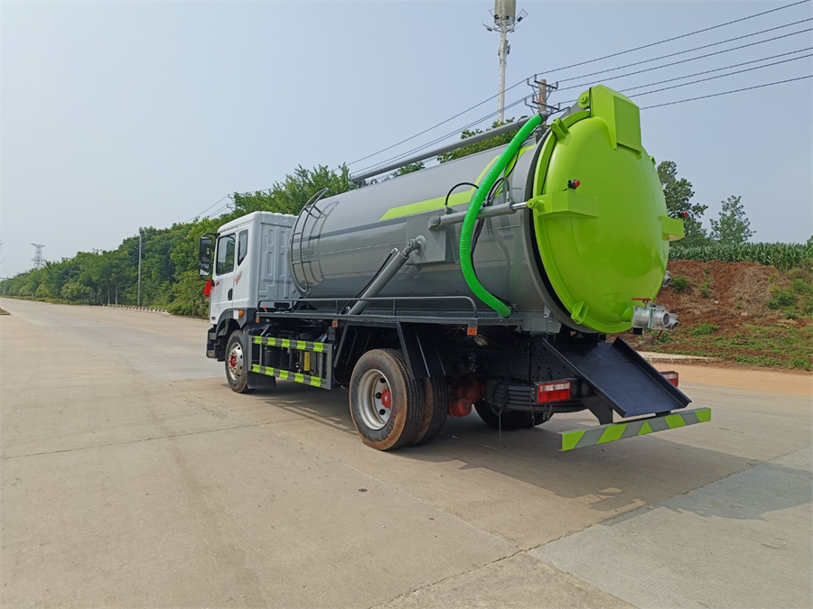 該車用于吸除水坑、下水道里污濁物;主要裝置有罐體及吸污裝置;隨底盤選裝駕駛室,選裝罐體兩側附件樣式及后部樣式;罐體總容量:11.16立方米,罐體有效容積:10.63立方米;罐體外形尺寸(含封頭總長×直徑)(mm):5400×1800,4800×1800;ABS系統生產廠家,型號:焦作博瑞克控制技術有限公司,J ABS;襄陽東風隆誠機械有限責任公司,ABS/ASR-24V-4S/4M.側、后防護材料均為:Q235碳鋼,連接方式均為:螺栓連接,后部防護截面尺寸(mm):120×50,后部防護離地高度(mm):450.卸料方式:舉升后卸式.采用4700mm,4500mm,3950mm軸距.隨底盤選裝燃油箱,電瓶,尿素罐,儲氣筒左右安裝位置.選裝限速裝置,限速89.