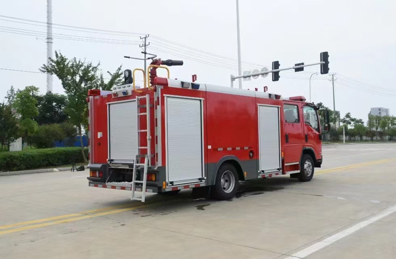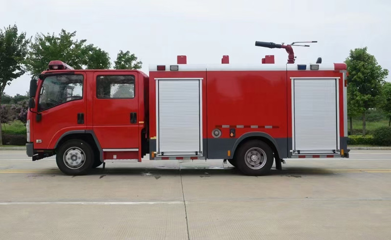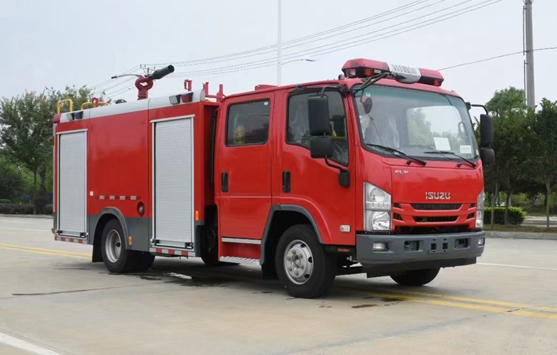 重慶五十鈴2-3噸消防車慶鈴QL1070A6HWY底盤改裝,平頭雙排駕駛室,液壓翻轉(zhuǎn),五十鈴4KH1CN5LS發(fā)動機,98馬力,國五排放,罐體容積2-3立方米;整車結構緊湊,方便靈活,動力性能好,車速高,能自由進出鄉(xiāng)村狹窄道路及小區(qū),具有大型消防車的全套消防功能,上裝箱體的上裝骨架全部采用引進歐洲技術生產(chǎn)的鋁合金型材制造,整車的重量減少,機動性能和整車載重量提高。除了裝備消防水泵及器材以外,還設有較大容量的貯水罐及水槍、水炮等?蓪⑺拖廊藛T輸送至火場獨立進行撲救火災。也可以從水源吸水直接進行撲救,或向其他消防車和滅火噴射裝置供水。在缺水地區(qū)也可作供水、輸水用車,主要適用于大中城鎮(zhèn)、鄉(xiāng)村狹窄街道、城市小區(qū)、繁忙的批發(fā)市場等場所的一般物質(zhì)滅火,閑暇時可用于園林噴灌、道路清灑。