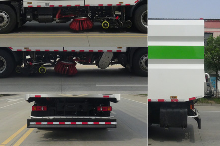 選裝箱體結構樣式,隨底盤選裝駕駛室。選裝污水箱后部可視窗口樣式,側面防護裝置為專用裝置, 后防護采用碳鋼:Q235;焊接連接,后部防護斷面尺寸(mm):230×60,后部防護離地高度(mm):350; 僅采用:4700,5000,5300mm軸距底盤;整車長/軸距/前懸/后懸對應關系為(mm):8300/4700/1430/2170, 8600/5000/1430/2170,8900/5300/1430/2170.ABS型號/生產廠家:3631010-C2000/ 東科克諾爾商用車制動系統(十堰)有限公司,ABS 8/東科克諾爾商用車制動系統(十堰)有限公司, 4460046450/威伯科汽車控制系統(中國)有限公司。專用功能:掃路,路面清洗;專用裝置:掃刷,吸盤 |