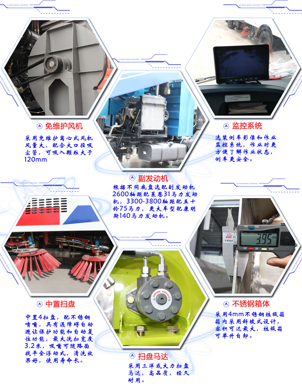 此車為道路洗掃專用車輛,專用裝置為掃刷.防護裝置均采用Q235A材質(zhì),均采用焊接連接, 專用裝置掃刷代替部分側(cè)面防護,掃刷離地高為(mm):180,后下部防護與車架焊接連接, 后下部防護尺寸:50×150(mm),離地面高度420mm. ABS系統(tǒng)型號為XH-KQ4S4M-E01, 生產(chǎn)企業(yè)為廣州市西合汽車電子裝備有限公司;型號為CM4XL-4S/4M, 生產(chǎn)企業(yè)為廣州瑞立科密汽車電子股份有限公司.整車長/軸距對應(yīng)關(guān)系為(mm):7590/4200,7890/4500, 8090/4700,8590/5200,8990/5600,4700/8310,5200/8680.選裝不同的外觀圖片.隨底盤選裝駕駛室. |