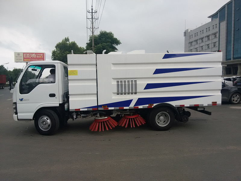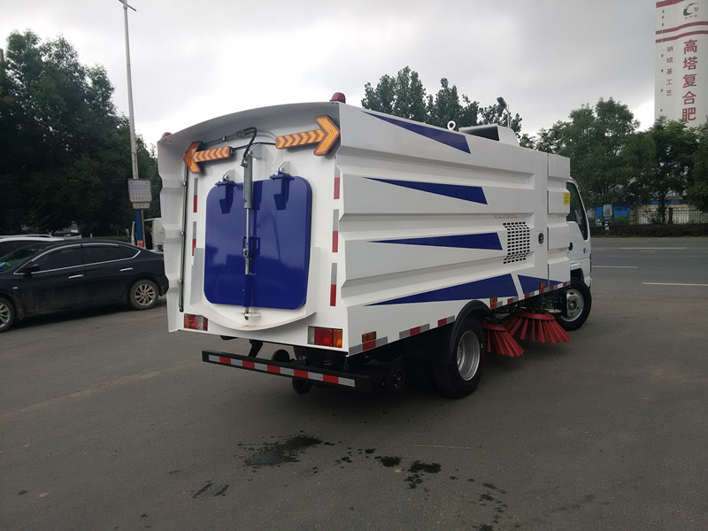 該掃路車采用重慶五十鈴型國(guó)五二類底盤改裝,加裝副發(fā)動(dòng)機(jī)、風(fēng)機(jī)、清水箱、垃圾箱、左右立掃、后置吸盤,掃盤降塵系統(tǒng),液壓系統(tǒng)、專用裝置電控系統(tǒng)和副車架等改裝而成。
