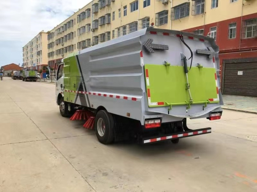 1.采用吸掃混合的方式收集垃圾,濕式除塵、電液控制,液壓傾翻卸料的作業方式對路面進行清掃作業。