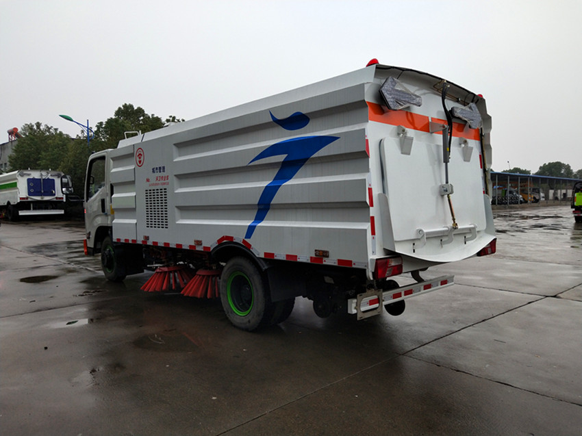 1、掃路車采用吸掃結(jié)合的方式收集垃圾,濕式除塵、電液控制,液壓傾翻卸料的作業(yè)方式對路面進行清掃作業(yè)。